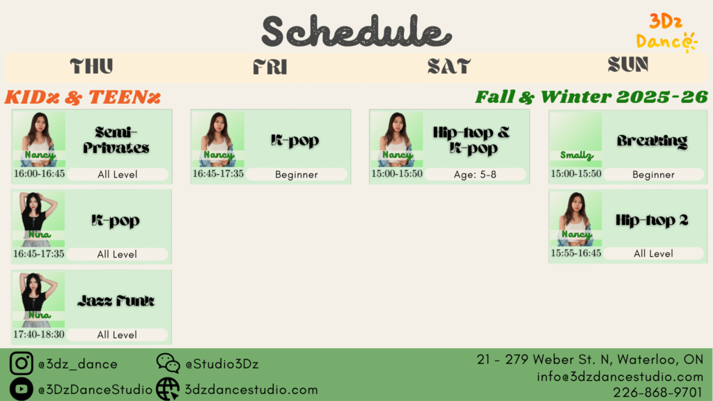 At 3Dz Dance Studio, we believe that dance is more than just movement—it’s a way for kids to express themselves, build confidence, and develop essential life skills. Our Kidz & Teenz dance programs are specially designed for children ages 3-16, offering a fun, engaging, and supportive environment where they can explore their passion for dance. With expert instructors and a variety of styles including Hip-hop, Jazz funk, K-pop, and more, your child will thrive as they learn and grow through dance.